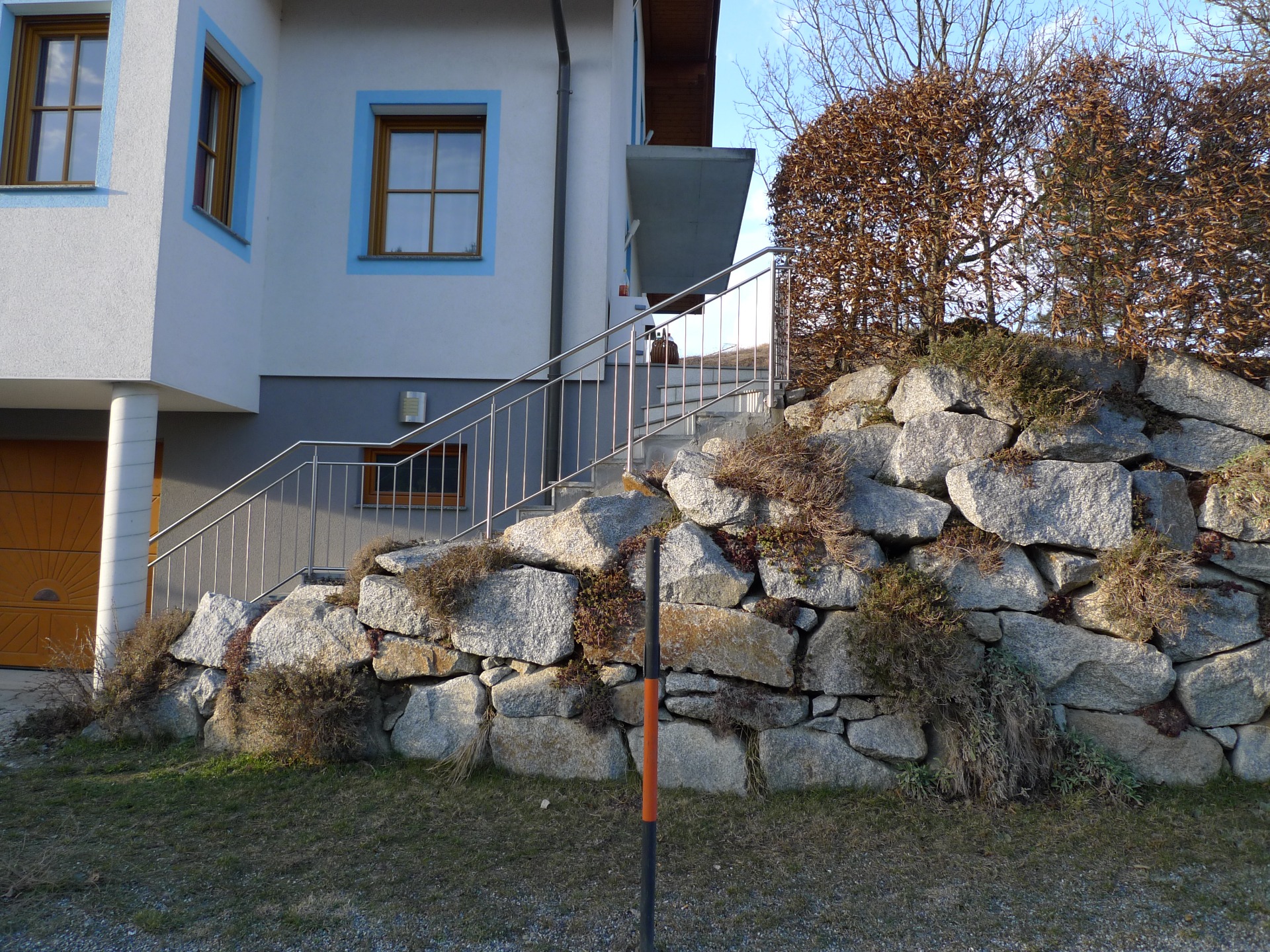Holzgeländer strahlen eine besondere Gemütlichkeit aus und passen perfekt zu Häusern im alpinen oder ländlichen Stil. Lärche und Eiche sind für den Außenbereich besonders geeignet, da sie von Natur aus witterungsbeständig sind. Allerdings muss man ehrlich sein: Holz im Außenbereich braucht Pflege. Je nach Exposition sollten Sie das Holz alle zwei bis drei Jahre mit einem geeigneten Schutzöl oder einer Lasur behandeln. Ohne Pflege vergraut das Holz – was manche Menschen durchaus schätzen, weil es einen natürlichen, rustikalen Charme hat.